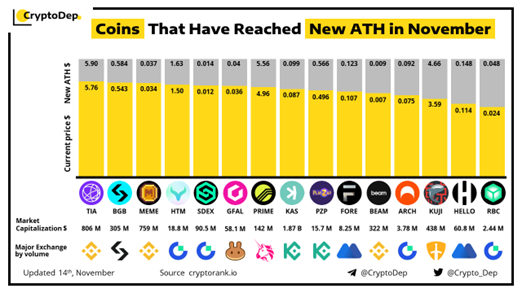 同时,随着“Bitget Launchpad”热度的上升,其入场券BGB也冲上了新的高度。据Bitget数据显示,其平台币BGB短时拉升至0.58 美元,已较0.058美元的初始价格翻了10倍,这也是除T2T2之外创造的新一“造富神话”。另据Bitget11月份报告官方数据显示,仅在11月13-14日的24小时内,BGB 市值首次达到8亿美元,一夜之间增长了19%,这也使得BGB 成为唯一在 2023年11月创下新高的平台币。而随着BGB 的大幅增长,BGB 一度进入 CoinGecko 的热门币榜单,据官方数据统计,BGB 现在还跃身