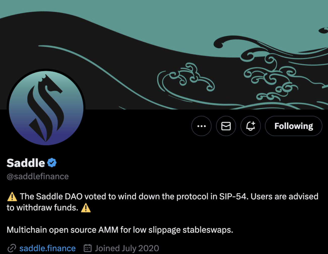 来源:Saddle Finance官方推特