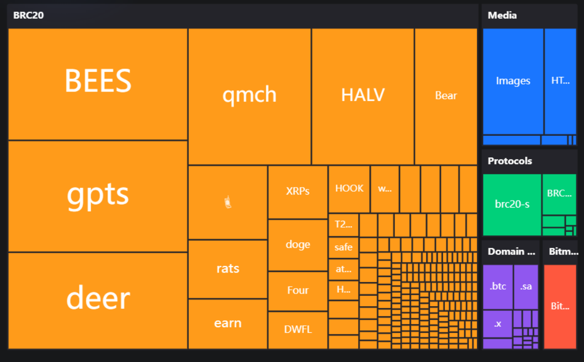 10 月份,比特币网络记录的 Ordinals 交易量比之前任何一个月都多。截至 11 月第一周,区块链已记录超过 175,000 笔交易。由于人们对 NFT 系列(例如 Bitcoin Bees 和 OrdiRats)的兴趣日益浓厚,这两种 BRP-20 代币在近期迅速走红,活跃度激增。