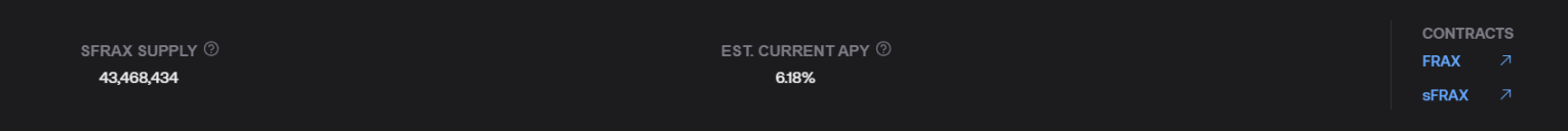 截至发文时,sFRAX 的质押总量已超 4346 万枚,不到半个月的时间即取得如此成绩,可谓增速惊人,同时目前的年化利率也已经掉到 6.18%。