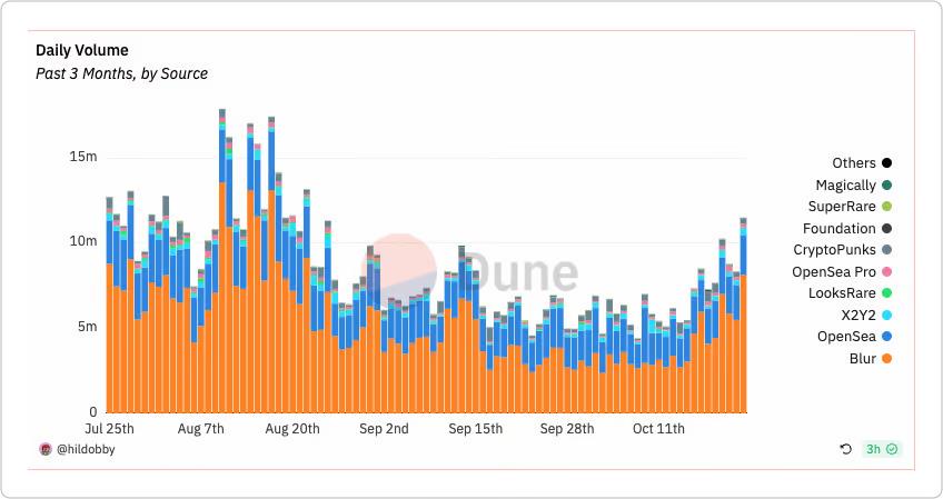 Blur 继续主导 NFT 交易量,这可能是由于预计在 11 月会有空投的原因。