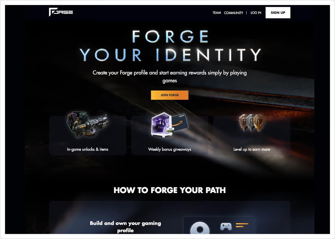 用户可以通过链接他们的在线游戏和社交账户来创建 Forge 档案,这样他们就可以根据他们的游戏活动赚取奖励。