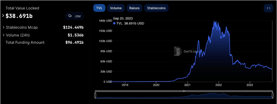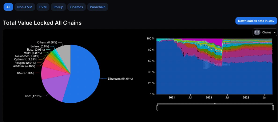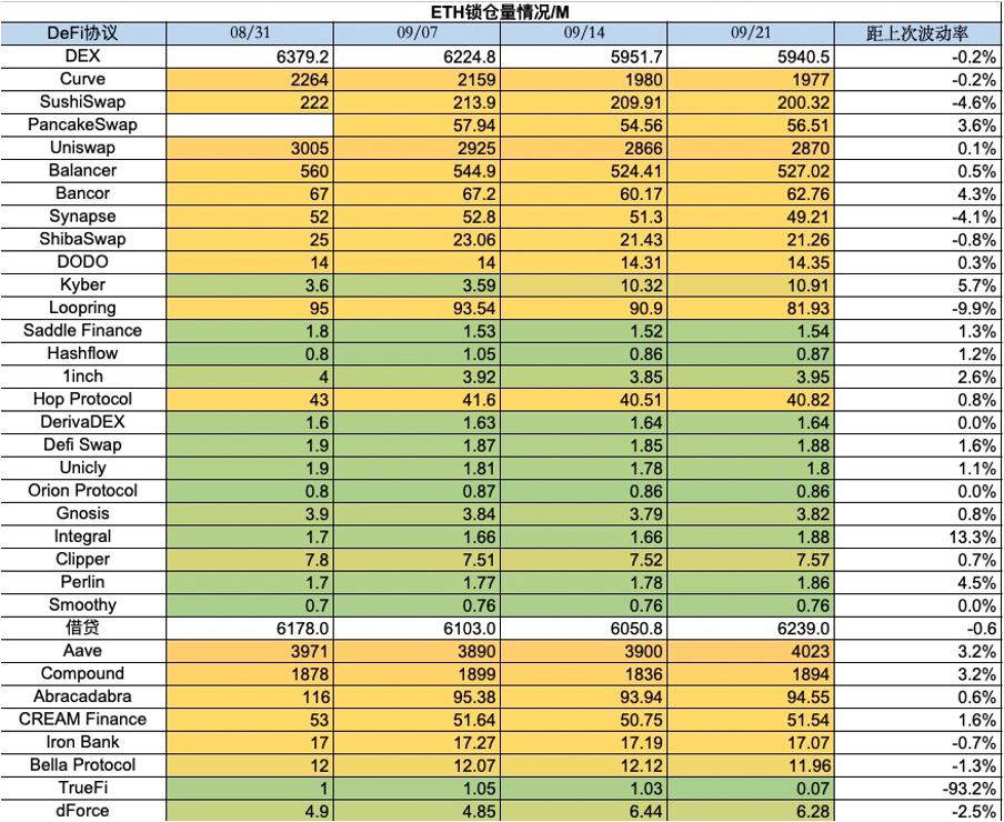 本周 TVL 整体上涨近1. 4b , 上涨幅度为3.6%, 虽然本周 TVL 整体有可观幅度的上涨, 但仍未走出下跌趋势. 本周 ETH 链上涨7.4%, BSC 链上涨3.3%, ARB 链上涨6.8%, POLYGON 链和 OP 链也都有超过3%的上涨. 值得关注的是 TRON 链在过去一周达到了20%以上的上涨, 但 BASE 链在经过过去几周的爆发性上涨后, 上涨幅度大大缓慢. 其他链也基本上全面上涨, 市场的情绪在过去一周有小幅回升, 并且颇为乐观。