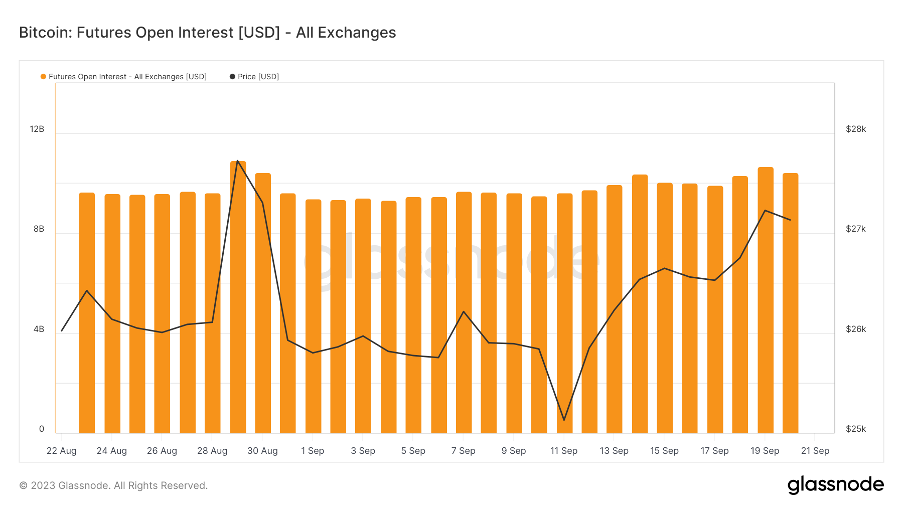 期货持仓量:本周 BTC 总持仓量小幅下降,炒作资金进场。
