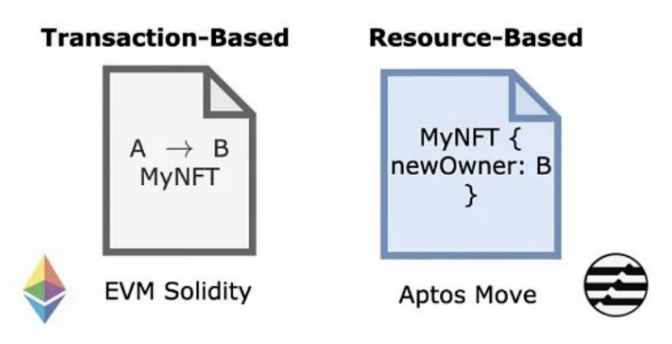传统的基于交易的方法,交易需要有相对应的交易对象,进行交易时需要存在A和B地址,同时为了保证A不会“双重花费”代币,每一笔交易均需要与其他所有交易核对以避免相互冲突,这无疑会大大减慢交易速度。Move基于资源的方法与此截然不同,Move不会记录A到B的交易,而是记录对象(或资源)的易手情况,并相应的更新属性,重要的是,资源是原子实体——资源X的存在不依赖于任何其他现有的资源。因此,Move语言非常适合区块链上资产的特性,对于区块链从业开发者也更为友好。