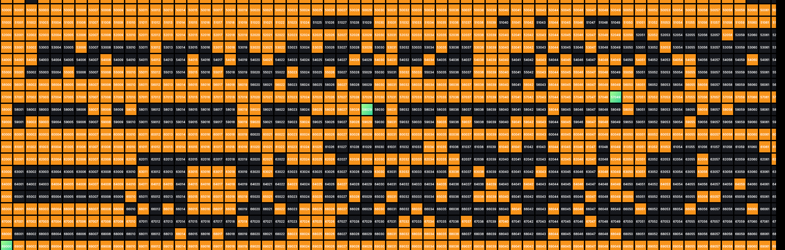 其中每个黑色的方块都会包含一个数字,这个数字就是区块ID,每个ID背后会对应一定数量的代币。