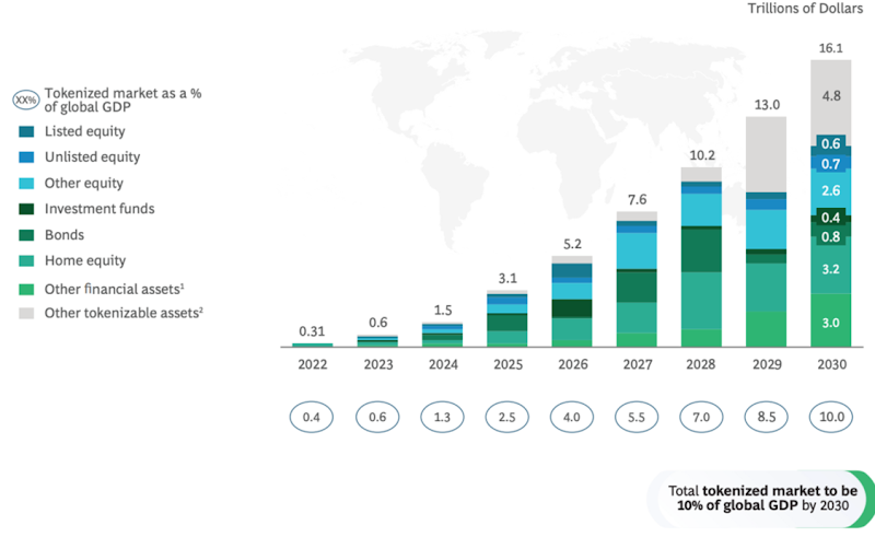 根据此前,Binance 对 RWA 赛道的研报中,曾预测 2030 年 RWA 市场规模有望超 16 万亿美元,占全球 GDP 10 % 以上。