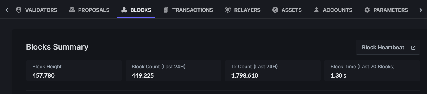 根据区块浏览器显示,截至11月3日,dYdX Chain网络参与的验证者有104位,其中活跃的验证者有60;已创建的区块高度超45万个,链上完成的交易笔数约180万。