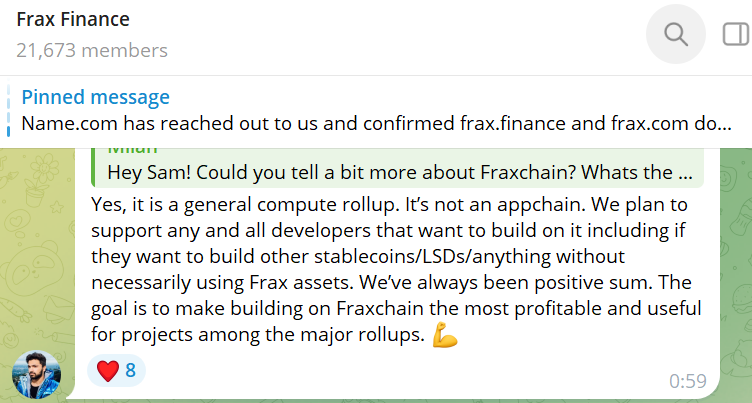 根据11月2日Frax Finance创始人Sam Kazemian在社群中的最新发言中表示,Fraxchain是一个通用型的Rollup,而非专为Frax Finance设计的应用链,开发者在FraxChain上部署稳定币、LSD等任何类型的应用,并希望能使FraxChain上构建的项目成为主要盈利能力最好、最受用户欢迎的Web3项目。此外,他还补充道,团队正在以论文驱动的方式为FraxChain构建核心Rollup技术。