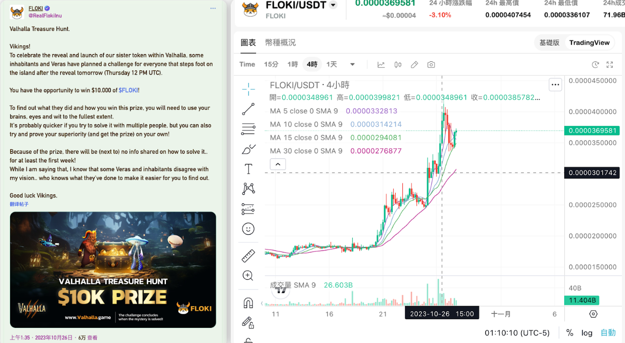 首先是在10月26日时,Floki官方推特宣布了相关信息,表示将在27日上线一款新的姐妹代币。