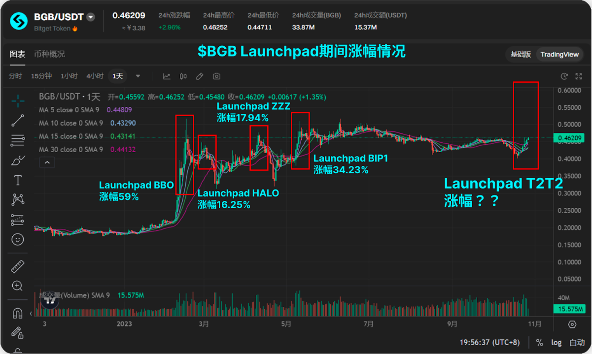 除此以外,在2023漫长的熊市中,财富机会也少之又少,CEX的Launchpad和MEME几乎是唯二的钻石手机会。从数据来看,也能发现每期Launchpad时,上线项目和BGB自身的多重机会。