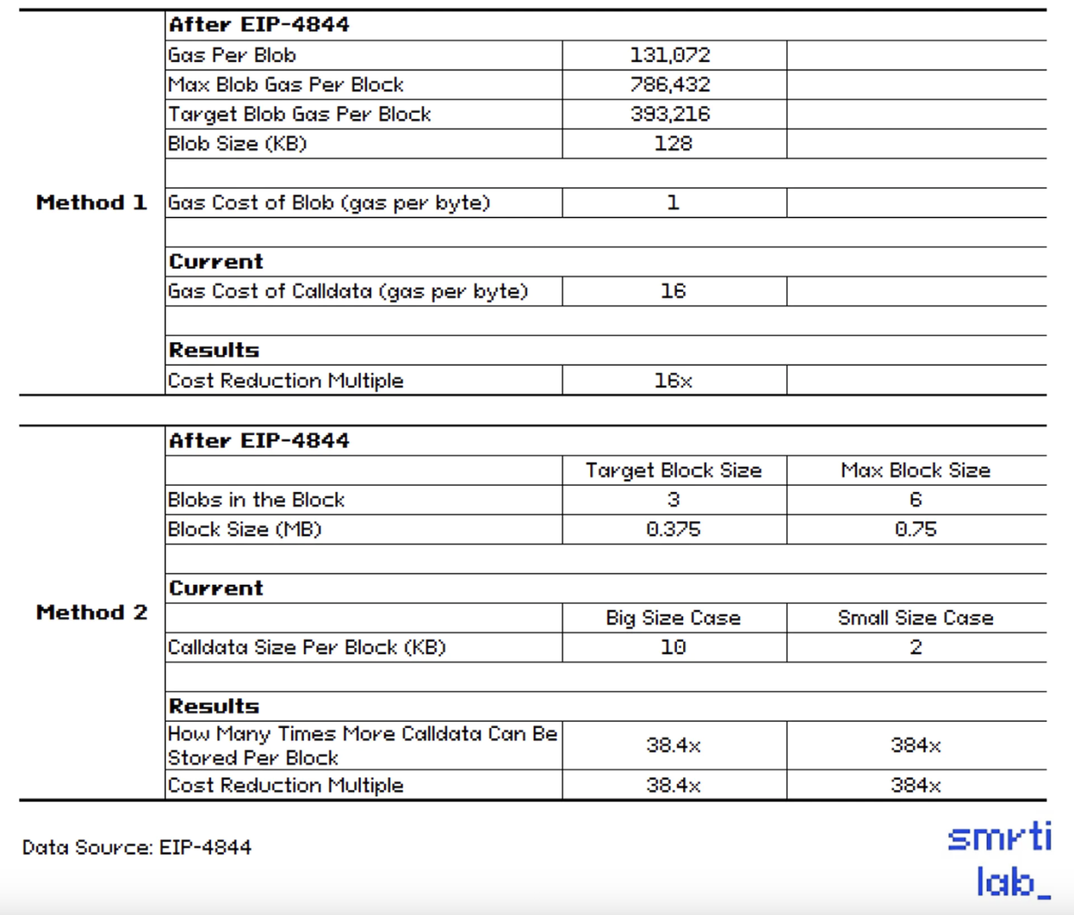 1. 我们通过两种计算方法来评估实施 EIP-4844 后可能会减少的 Gas 费、TPS(每秒交易量)和容纳 Rollups 的能力。