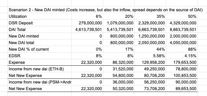 随着 DAI 的增长,从 EDSR ( Enhanced DAI Savings Rate )的估算中可以看出, Income from new DAI 一项出现了 90M 的净增长。