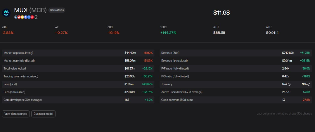 MUX Protocol 既是一种交易协议,也是一个聚合器,该协议将费用收入的70%分配给提供 ETH 的流动性提供者和 MUX 代币质押者。由于 MUX 部署在多个广泛采用的生态系统上,比如永续交易平台、期权平台、投注平台等,因此有不同类型的协议组合。 MUX Protocol 的市值较低,但可扩展性和可靠性表现较好,因此 MUX 可以看做是一个“有趣”的投资机会。