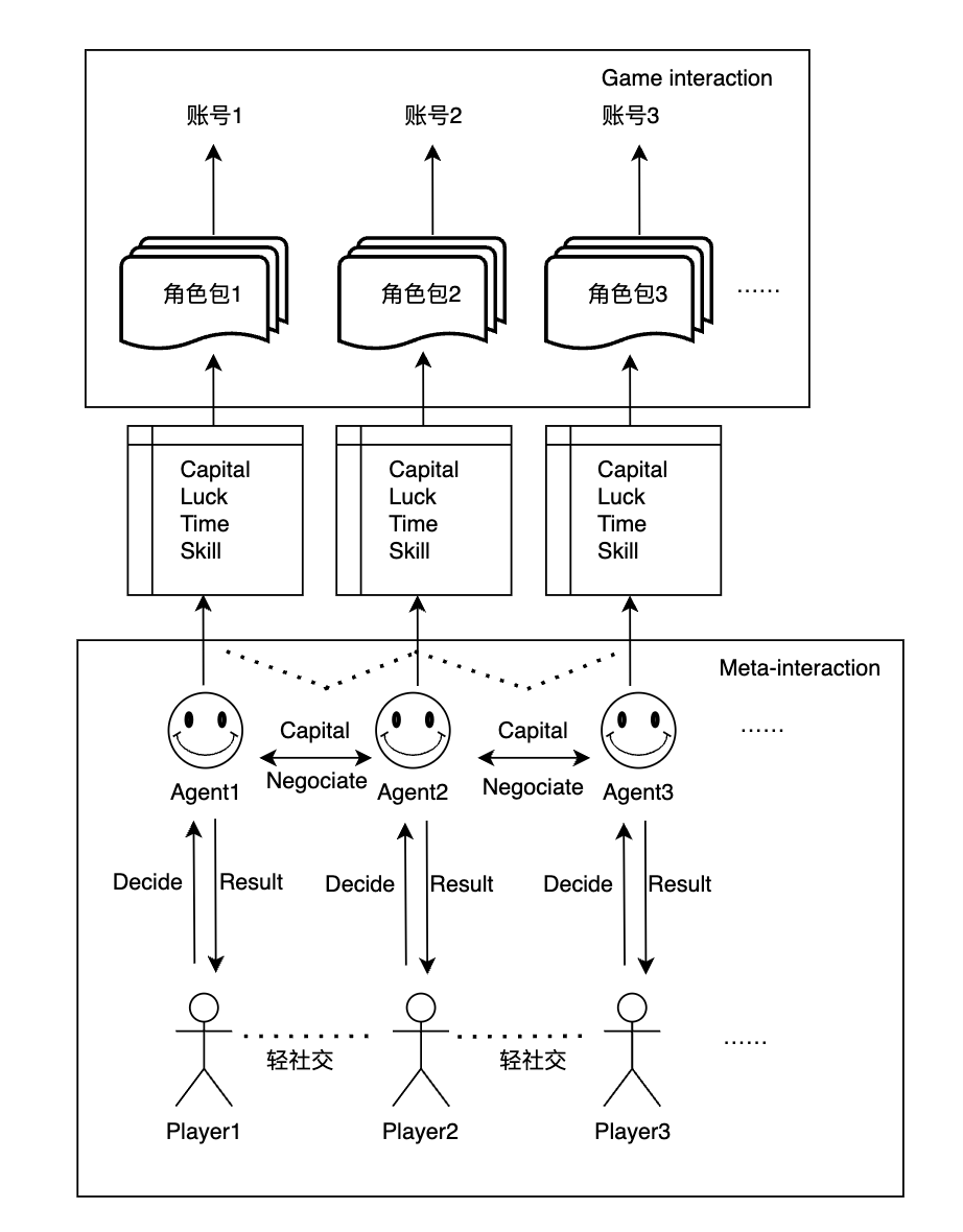现在AI已经有了竞拍/议价的功能,那么整个经济交互系统中,如果由AI来代替人掌管游戏内交互,以及游戏外与其他玩家的交互;而每个玩家都有一个agent,这些agent可以与其他agents的通信,共同协商条件/议价,这不是很好玩吗?