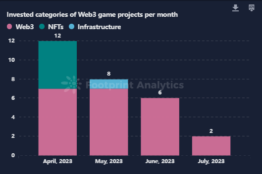 7 月份只有两轮与游戏相关的项目融资。自 4 月份以来,融资轮次一直呈下降趋势。