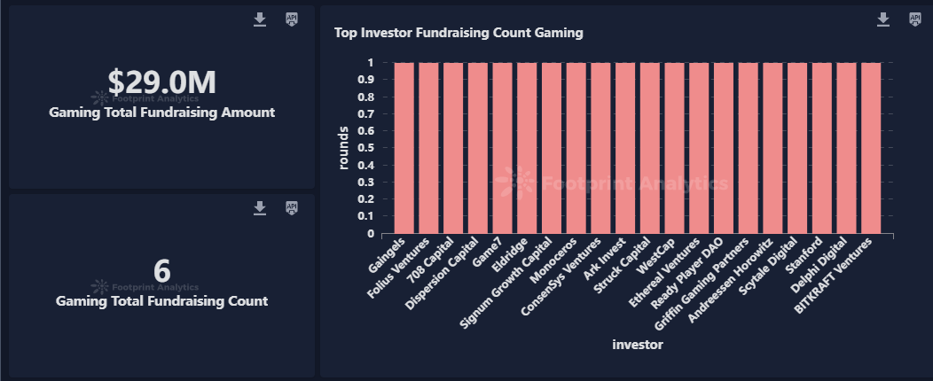 -本月区块链游戏领域的投资总额较上月有大幅度下降,6 轮融资共筹集 2,900 万美元。
