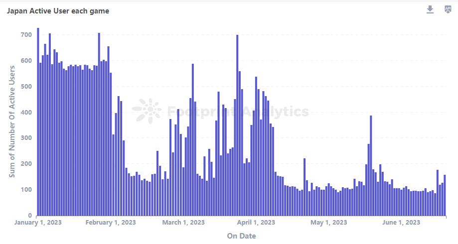 根据Footprint Analytics数据显示,尽管《我的加密英雄》并没有一直保持高活跃用户数量,但它在用户活跃度上经历了几次显著的增长。虽然这些增长可能微不足道,但经过几个周期起伏后,这款游戏成功吸引了一批长期参与的用户。