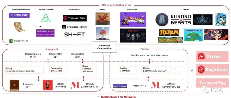 Treasure 确定了 3 个关键层:弹药库(游戏和 materverses 项目)、社区(Treasure 的子社区和社区联系)和基础设施(共享经济引擎、工具和资源,以增强构建者的能力)。