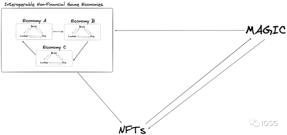 $MAGIC 是贯穿 TreasureDAO 生态的唯一代币,承担着治理和费用代币的功能,并且是连接各个游戏社区的核心资源。TreasureDAO 并不限制建立在之上的游戏发行自己的代币,而是积极帮助他们构建经济系统,并用 $MAGIC 提供生态支持。目前来说,有以下两个层面:一是以 $MAGIC 作为 grant 或早期投资孵化的资产,BattleFly 就是个很好的例子。二是将 $MAGIC 作为需要争夺的底层资源,比如 Harvester Takeovers 竞赛,为所有游戏提供争夺流量及更多资源的机会,Harvester 将可能是产出 $MAGIC 的唯一通道。