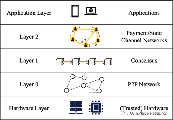 Layer 0:Layer 0 指的是 Blockchain 的物理设施和网络架构,包括硬件设备、网络协议和传输介质等,其承载着信息跨链和解决资产的底层作用。当前以 Cosmos、Polkadot 和 LayerZero 为主要技术代表。