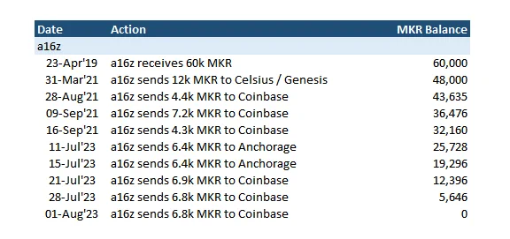 2023 年 7 月:将其剩余的 32,000 个 MKR 发送到交易所出售。