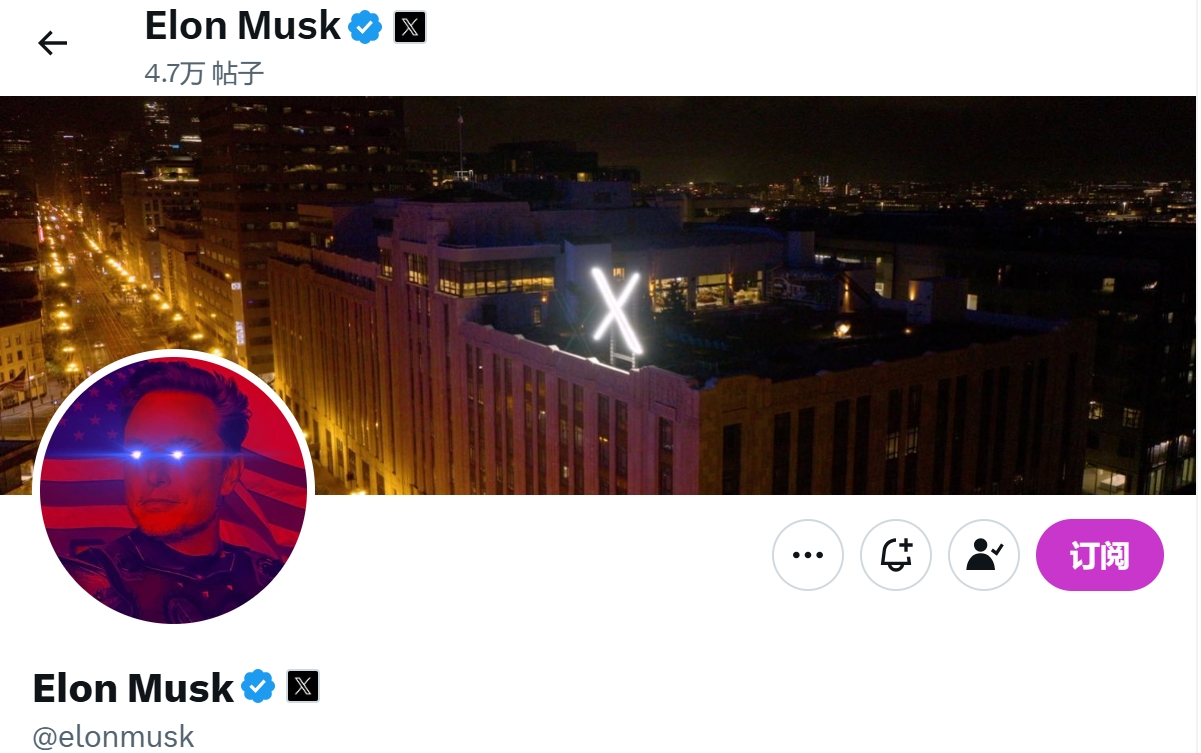 萌币网 消息,马斯克已将其 X 平台头像更改为比特币支持者标志性的「激光眼」图片。