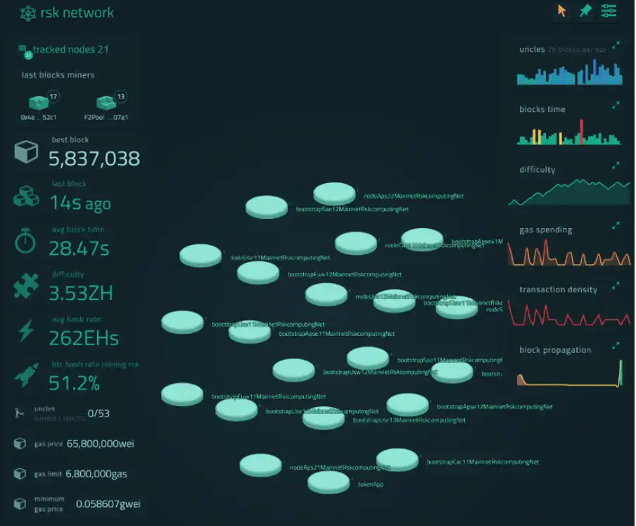 RSK 利用了一种合并挖矿的算法,比特币矿工可以几乎零成本地协助 RSK 进行区块生产,并获得额外的奖励。RSK 没有本地代币,继续使用 BTC(RBTC)作为 Gas Token。RSK 拥有与以太坊虚拟机(EVM)兼容的执行引擎。