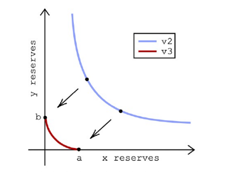 在流动性季度失衡的 DeFi 市场,也存在低资本效率症结。以 Uniswap v2 为代表的 AMM 模型通常会为所有价格做流动性准备,即其能够提供的交易流动性的价格范围是(0,∞)。但实际上,通常会围绕市场价格周围存在大量的交易, 这意味着只有在市场价格附近的流动性才是有效的,所以对于绝大多数沉淀在流动池中的资产并没有被利用。