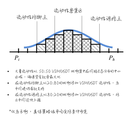 Vimverse 不支持通过 LP 购买债券,其与 Uniswap v3 进一步实现组合来主动管理流动性。实际上,Uniswap v3 的 CLMM 机制兼顾了资本效率,即 LP 们能够对特定的价格区间进行 LP 做市。基于此,Vimverse 在出售债券获得资金后,其通过其独创的协议主动做市(PMMM)机制,通过与 Uniswap V3 的定制化流动性功能进行组合,实施精细化的流动性管理策略。 在控制了流动性的同时,还将通过专业的做市团队通过策略主动高效地管理流动性,并充分获利后将收益返还给债券购买者。