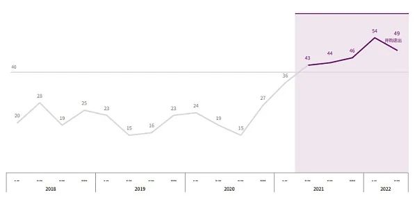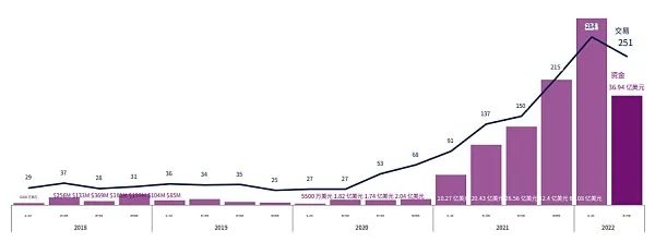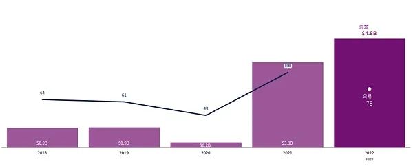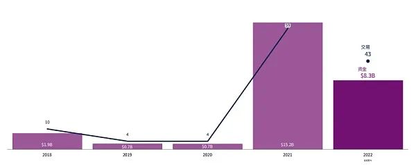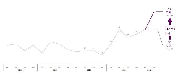 半年 43 笔投资,2022 年全年超过 1 亿美元的巨额融资轮次可能会创下历史新高。