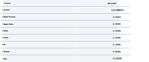 Crypto 独角兽企业的诞生减半。本季度 Crypto 独角兽企业诞生了 8 个,只有上个季度的创纪录高点(16 个) 的一半,其中最有价值的是位于塞舌尔的加密货币交易平台 KuCoin,估值为 100 亿美元,而新独角兽企业中有一半是 Web3 初创公司。