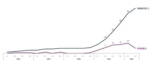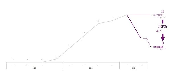 2022 年第二季度新晋独角兽企业减半,总数达到 71 个。