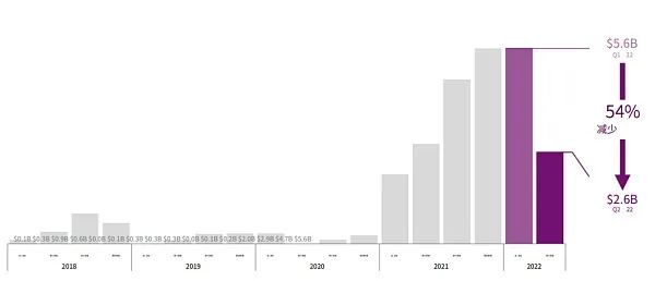 2022 年上半年投资于 Web3 初创公司的资金已经与 2021 全年的资金总额相同。