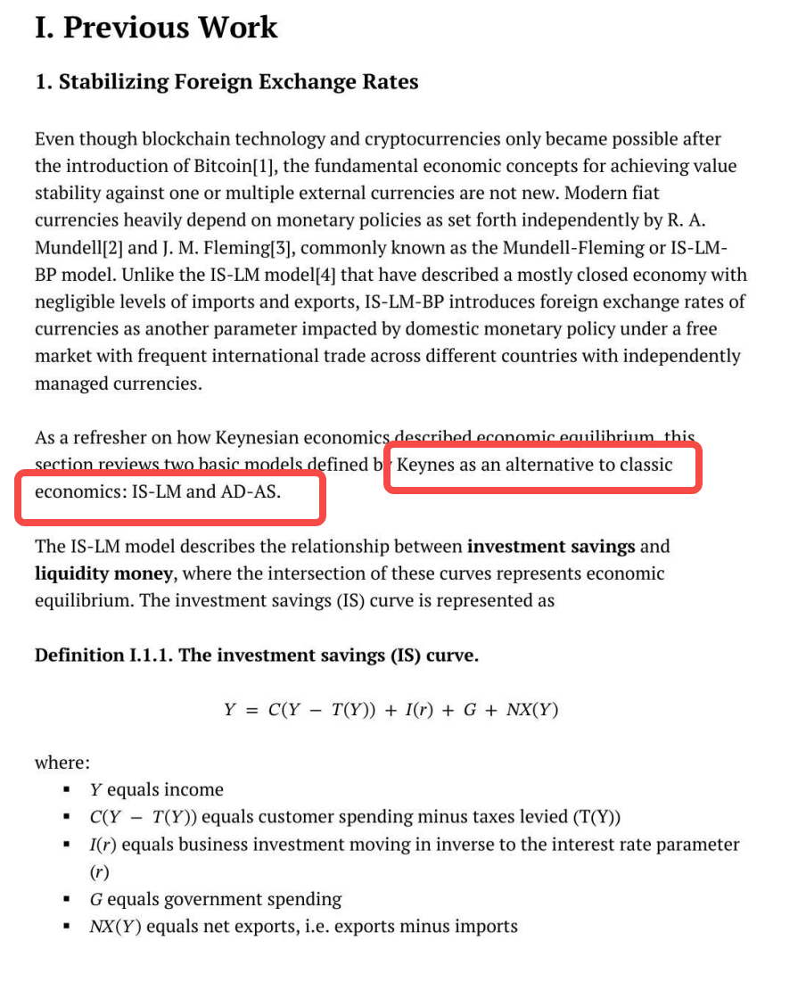 对,你没看错,Mint Cash 的白皮书花了大量的篇幅进行了一次「史前铺垫」: 详细描述了上个世纪的经济学家凯恩斯的古典经济模型,并对其数学公式进行了详细阐述。