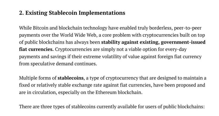白皮书第一部分,叫做「过去的工作」。主要描述了前人对于加密市场的稳定币,以及如何让现实世界中的货币保持稳定的探索。