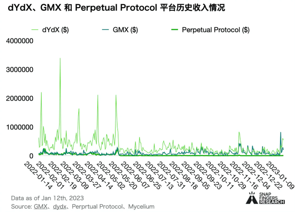 随着 FTX 事件的持续发酵,越来越多的用户开始重新审视资金安全问题,并转向 DeFi,给 GMX 的爆发奠定了基础。dYdX 仍然是衍生品协议龙头,拥有最多的累积用户量,同时是收入最高的协议,但 GMX 追赶势头迅猛。