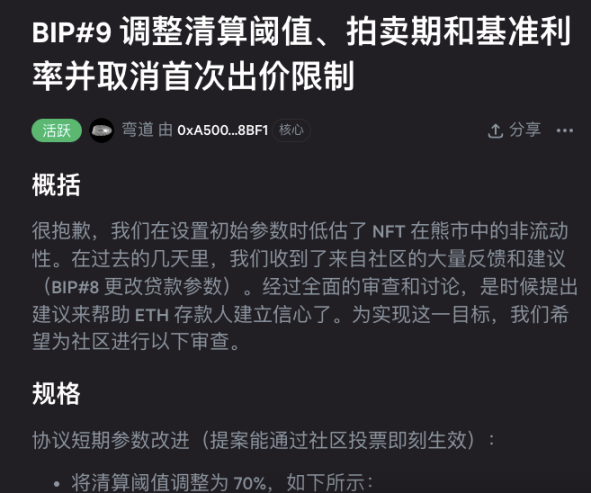 BendDAO 发起提案修改协议参数