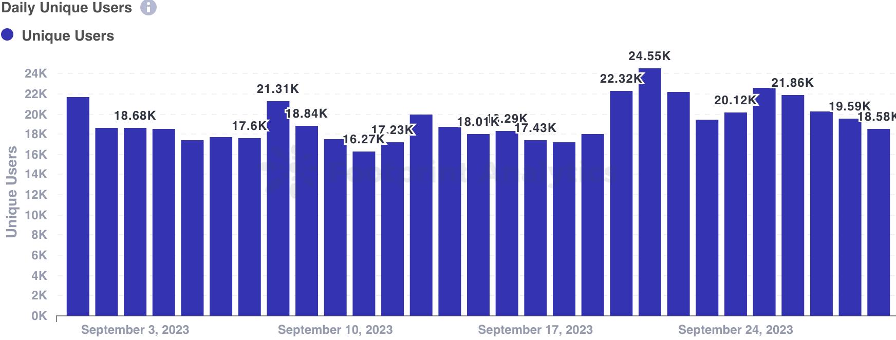 以太坊共吸引了 13.56 万独立用户,与 8 月份相比下降了 8.1%。Polygon 的独立用户数量也有所下降,共计 9.37 万,降幅为 30.5%。BNB 独立用户数量为 3.17 万,大幅下降了 42.2%。在过去几个月中,用户参与度持续下降。