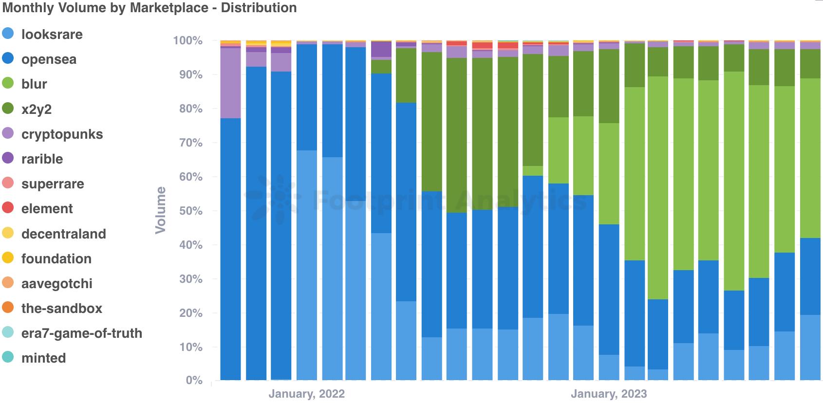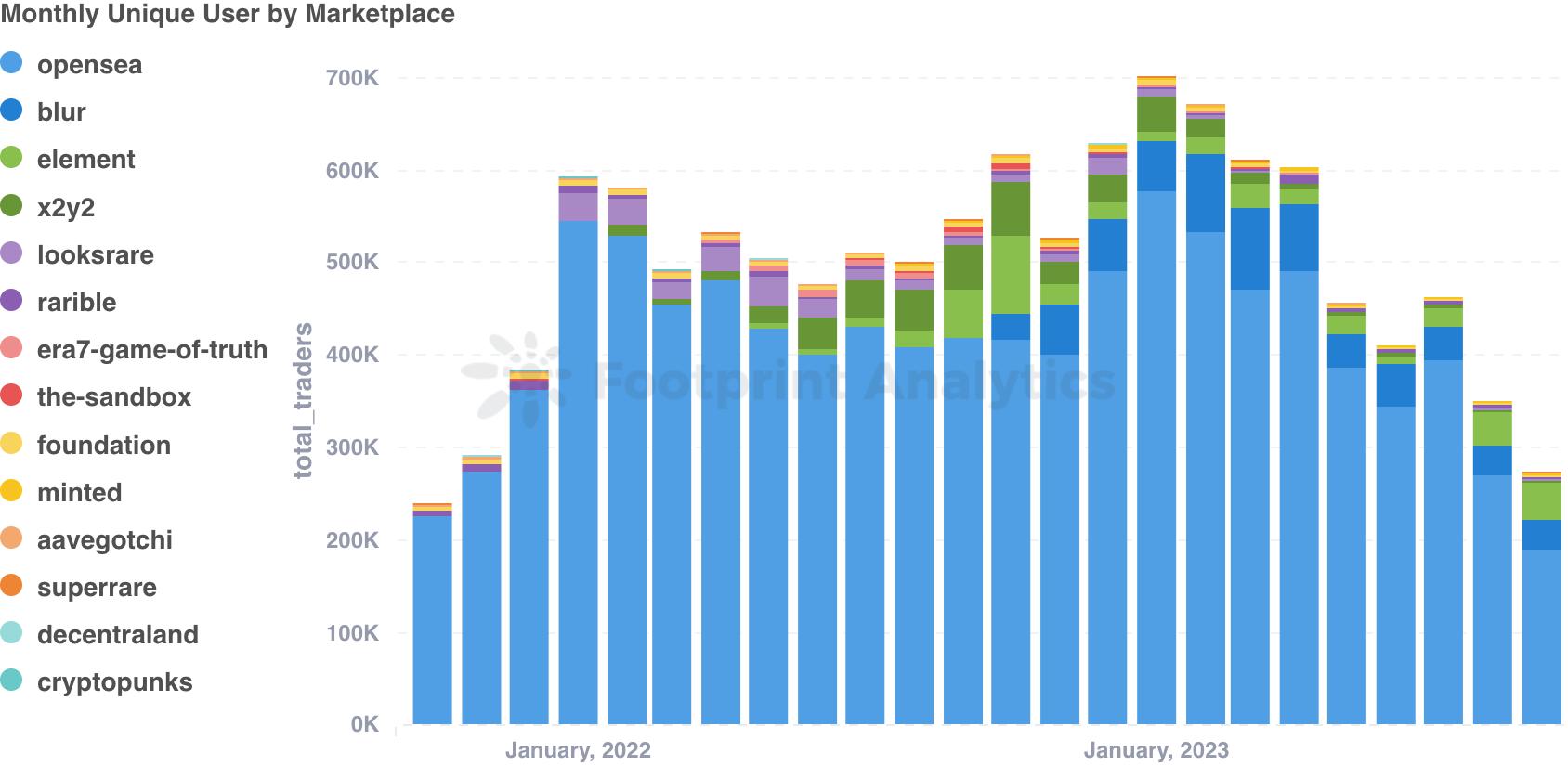 交易市场: OpenSea, LooksRare, Blur, X2Y2, Cryptopunks, Rarible, SuperRare, Foundation, Decentraland, Aavegotchi, Element, Era7, the Sandbox, Minted