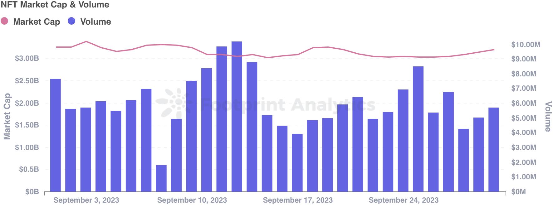 9 月份,NFT 市场与比特币的走势背道而驰,出现了显著的下滑,交易量大幅下降。