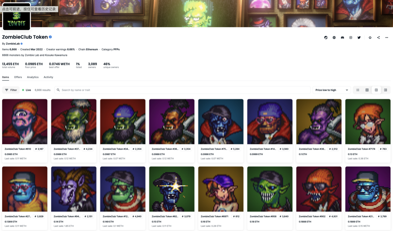 有“杰伦熊”在2022年初的火爆,余文乐也趁着市场热度发行了据说是筹备了半年之久个人NFT品牌“ZombieClub Token”,发售不到两分钟立刻宣告售罄,直接占领当时OpenSea全平台交易第一,并创下了仅用时2小时42分钟就全部售完的纪录,ZombieClub 全平台销售额当时高达3500万港元,约合美元448万。好家伙,合着这几多年亏的要翻三倍才能赶上当时销售额的零头。