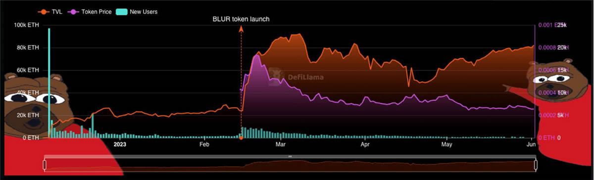 潜在的一个原因是 Blur 的 bid 挖矿奖励机制给市场提供了大量流动性的同时加速了 NFT 市场泡沫破灭的进程。 (相关链接)