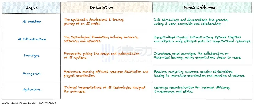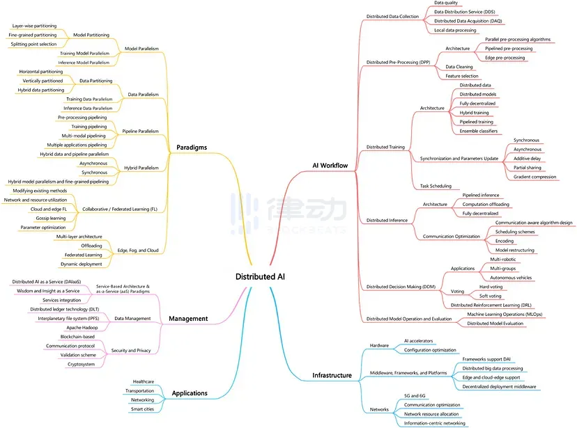 DAI 呈现了一种替代轨迹,以应对中心化模型固有的挑战。Janbi 等人最近发表的一篇元分析论文作为一份全面指南,详细介绍了 DAI 的五个主要领域。