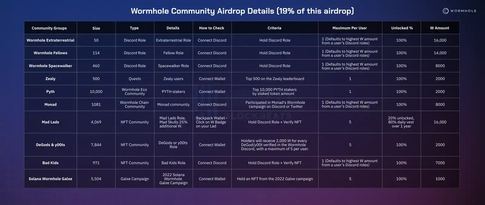 3.Wormhole 将仔细重新评估用户空投资格,W 奖励数量可能随之变化;