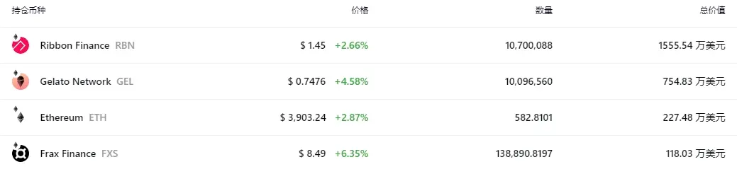 据 Rootdata 统计的 7 个 Dragonfly 链上地址,截止发文前,该机构链上总持仓约 5700 万美元。Dragonfly 在 2021 年领投了 Frax Finance,链上持有 2.36% FRAX 代币(价值约 1845 万美元),其管理合伙人 Haseeb 之前在稳定币方向创业。