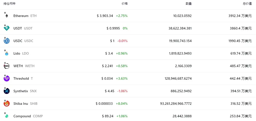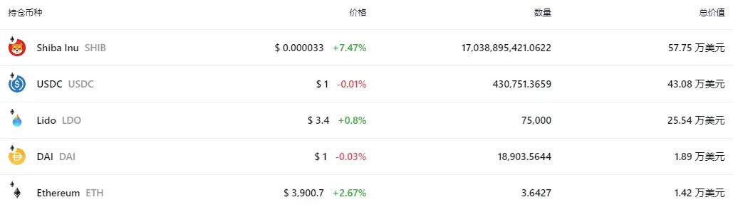 Jump Trading 从芝商所(CME)交易池中起步,逐步成长为一家以研究为导向的量化交易公司。据 Rootdata 统计的 34 个 Jump Trading 链上地址,Jump Trading 链上持有多个币种,截止发文前,总价值约 1.35 亿美元,占比最多的是 ETH(约 3500 万美元),还包括 SHIB、LINA 等代币。