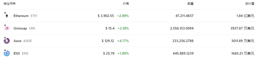 据 Rootdata 统计的 26 个 a16z Crypto 链上地址,截止发文前,a16z Crypto 持有的最大仓位是 UNI 代币,大约 4400 万枚(价值 5.75 亿美元),并且分布在多个地址。因持有 UNI 占比太多,a16z 曾陷入 Uniswap 提案治理风波。