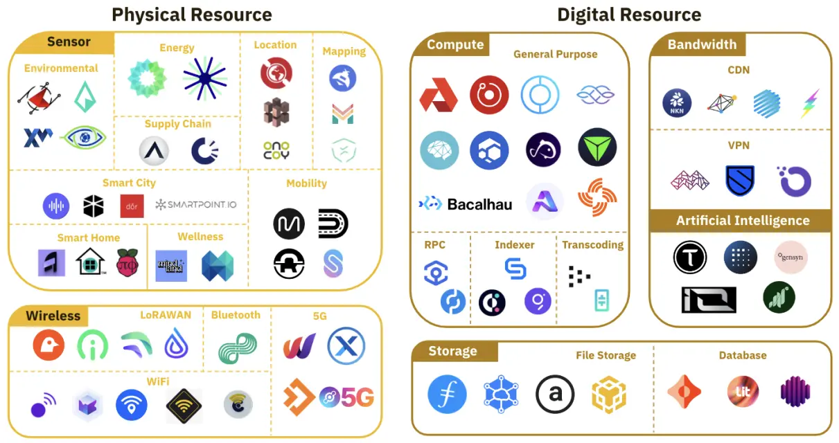 DePINs的概念非常广泛,它拥有跨越 6 个不同子行业(计算、人工智能、无线、传感器、能源和服务),这种去中心化模型重新定义了我们对于物理基础设施开发和未来预期。