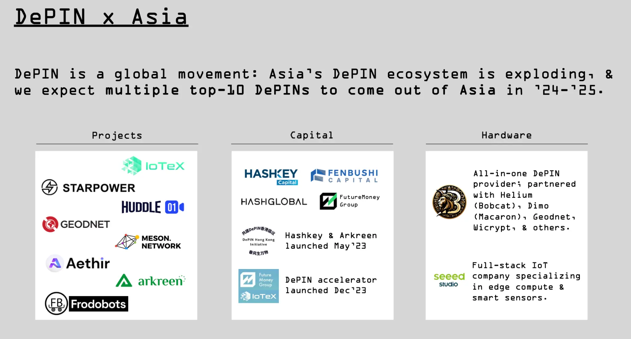 随着 DePIN 行业的成熟,预计将出现显着增长,尤其是在亚洲。 Messari 表示,预计亚洲将成为这一增长的主要催化剂,预计该地区将在 2024 年至 2025 年间出现几个顶级 DePIN 项目。DePIN 计划的成功将取决于它们提供切实利益和应对复杂性的能力数字基础设施景观。